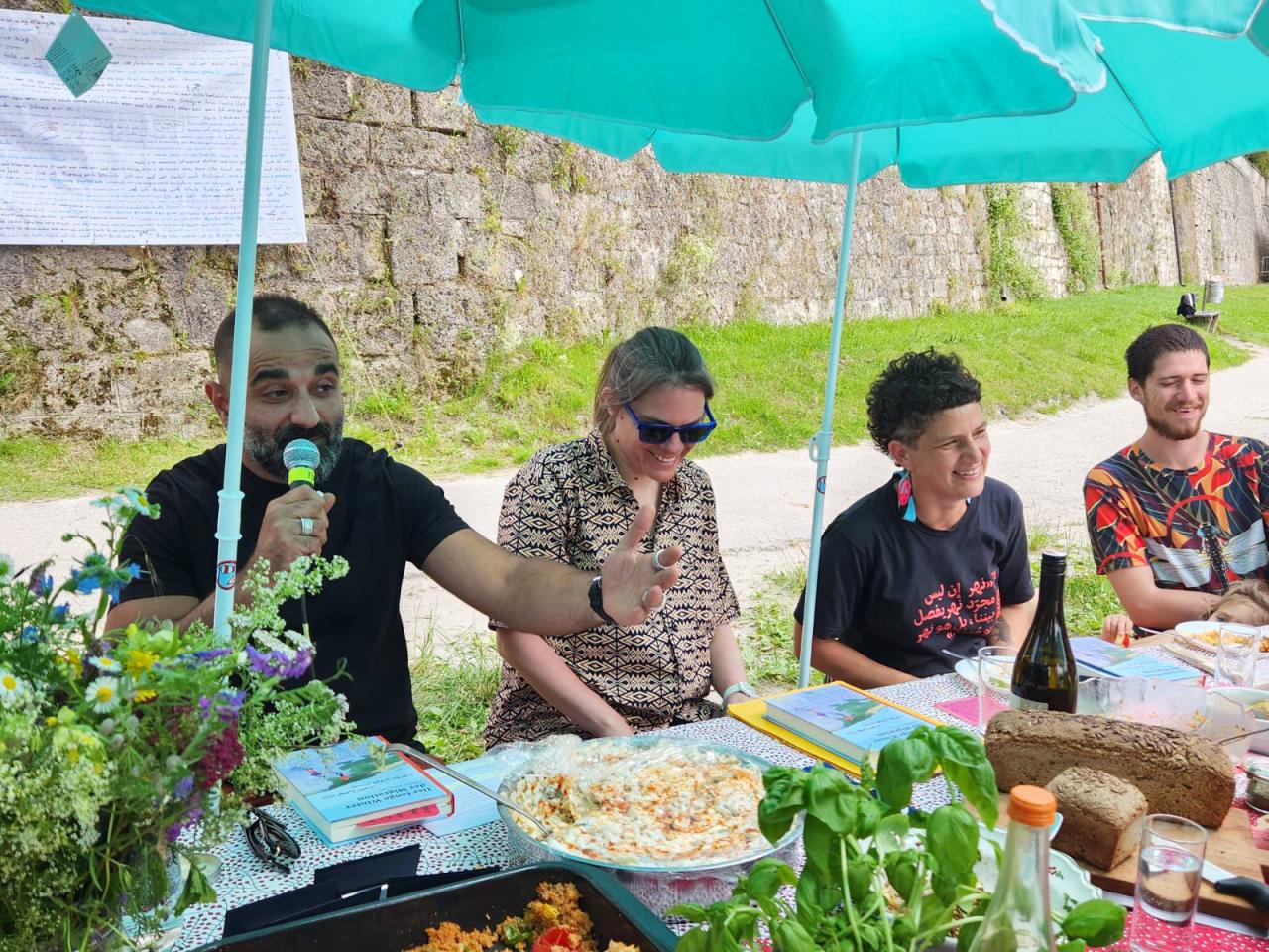 [Über das Video: Jad Turjman, aus einem unveröffentlichten Sketch für einen geplanten, aber nicht mehr realisierten Comedy-Auftritt am 22. August 2022. Zur Verfügung gestellt von AR Management / Carmen Außerhuber. Übersetzung ins Arabische: Hamed Abboud. Arabische Version gelesen von Widad Nabi, deutsche Version gelesen von Lisa Bolyos, am 16.6.2025 im ZIMT, Braunau am Inn, im Rahmen des Festivals der Regionen. Foto: Otto Saxinger. Aufnahme und Bearbeitung: Natalie Deewan.]