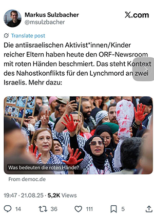Sulzbacher, Markus. 2025. Post über „rote Hände“ im ORF-Newsroom vom 21 August. (Zuletzt aufgerufen am 20. November 2025).